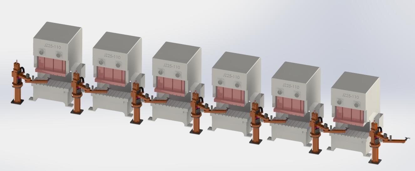 沖壓機(jī)械手是一種模擬人手操作的自動機(jī)械。它可按固定程序抓取、搬運物件或操持工具完成某些特定操作。應(yīng)用機(jī)械手可以代替人從事單調(diào)、重復(fù)或繁重的體力勞動,實現(xiàn)生產(chǎn)的機(jī)械化和自動化,代替人在有害環(huán)境下的手工操作,改善勞動條件,保證人身安全有些操作裝置需要由人直接操縱,如用于原子能部門操持危險物品的主從式操作手也常稱為機(jī)械手。機(jī)械手在鍛造工業(yè)中的應(yīng)用能進(jìn)一步發(fā)展鍛造設(shè)備的生產(chǎn)能力,改善熱、累等勞動條件。